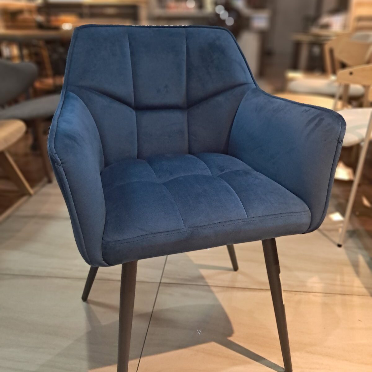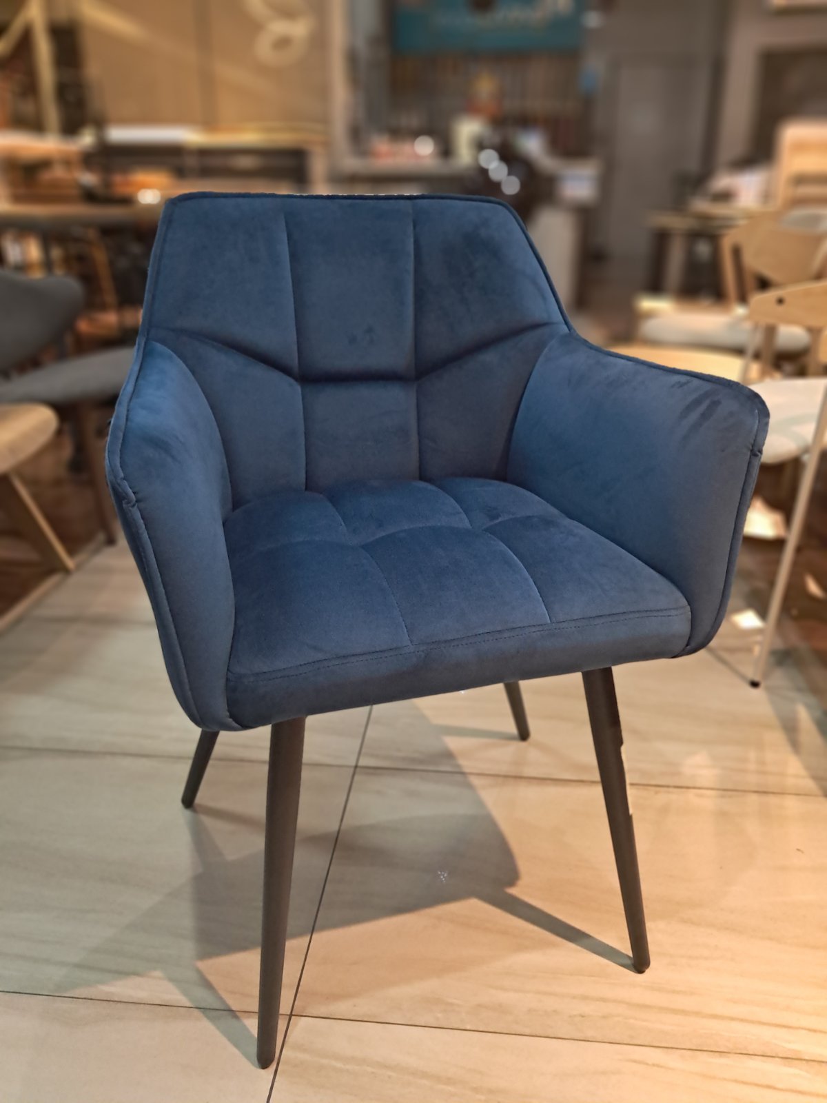 Austin Chair Blue upholstered velvet fabric seat Black metal frame Dimension: W58xD43xSh48xH83cm